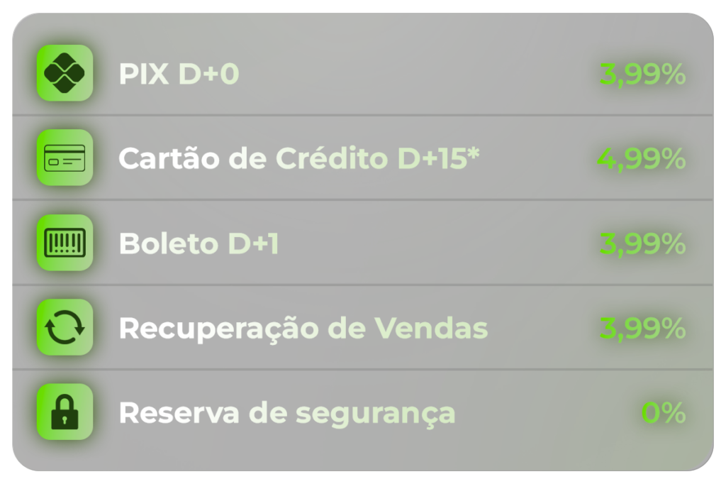 Alta conversão, recuperação de vendas e segurança antifraude com nossa plataforma. Sem bloqueios, aprovação automática, saque rápido, e as taxas mais baixas do mercado.